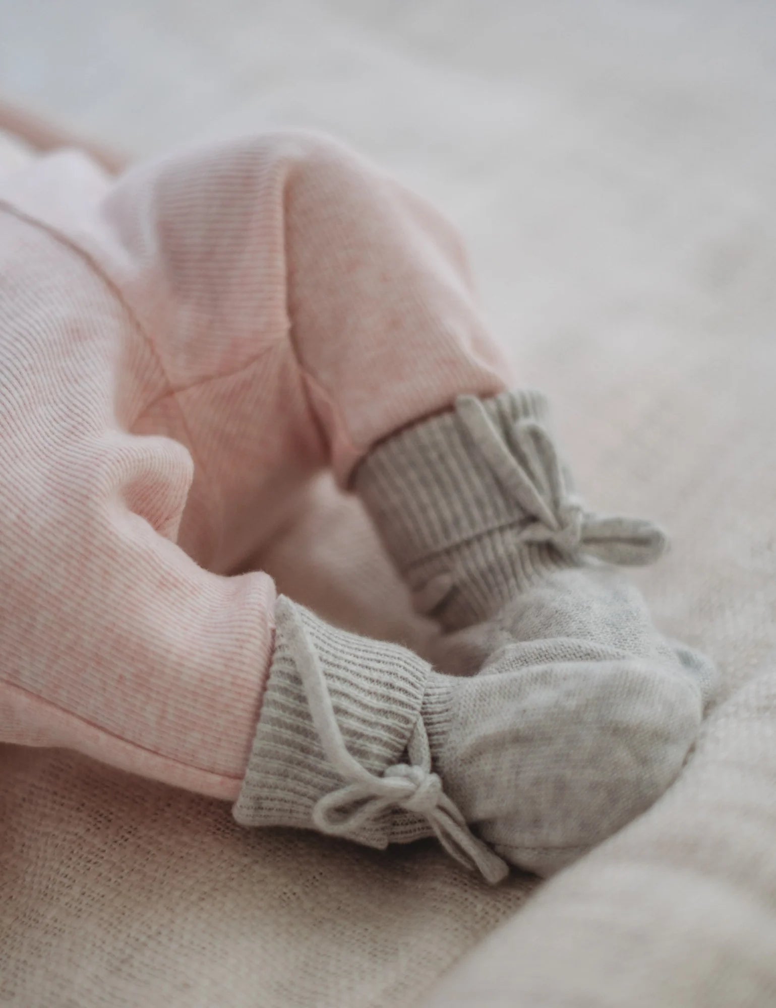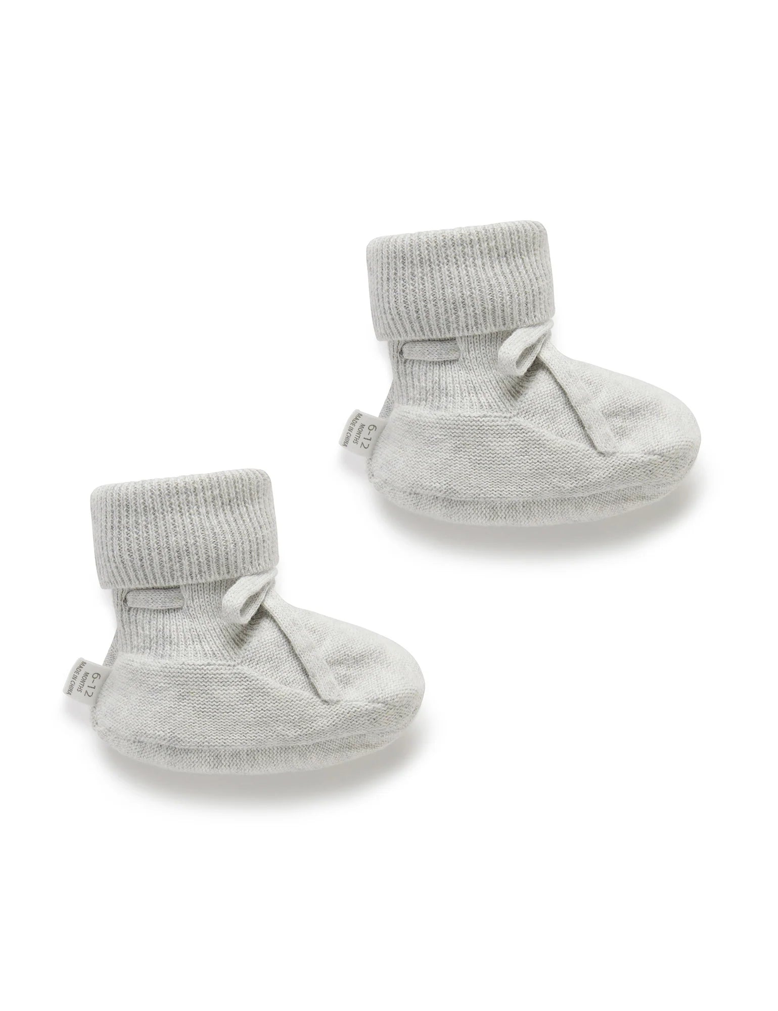 Purebaby Knitted Bootie, the perfect gift to keep your little ones feet nice and warm! Featuring a ribbed folded cuff and adjustable tie around the ankle to keep the Bootie all snug.