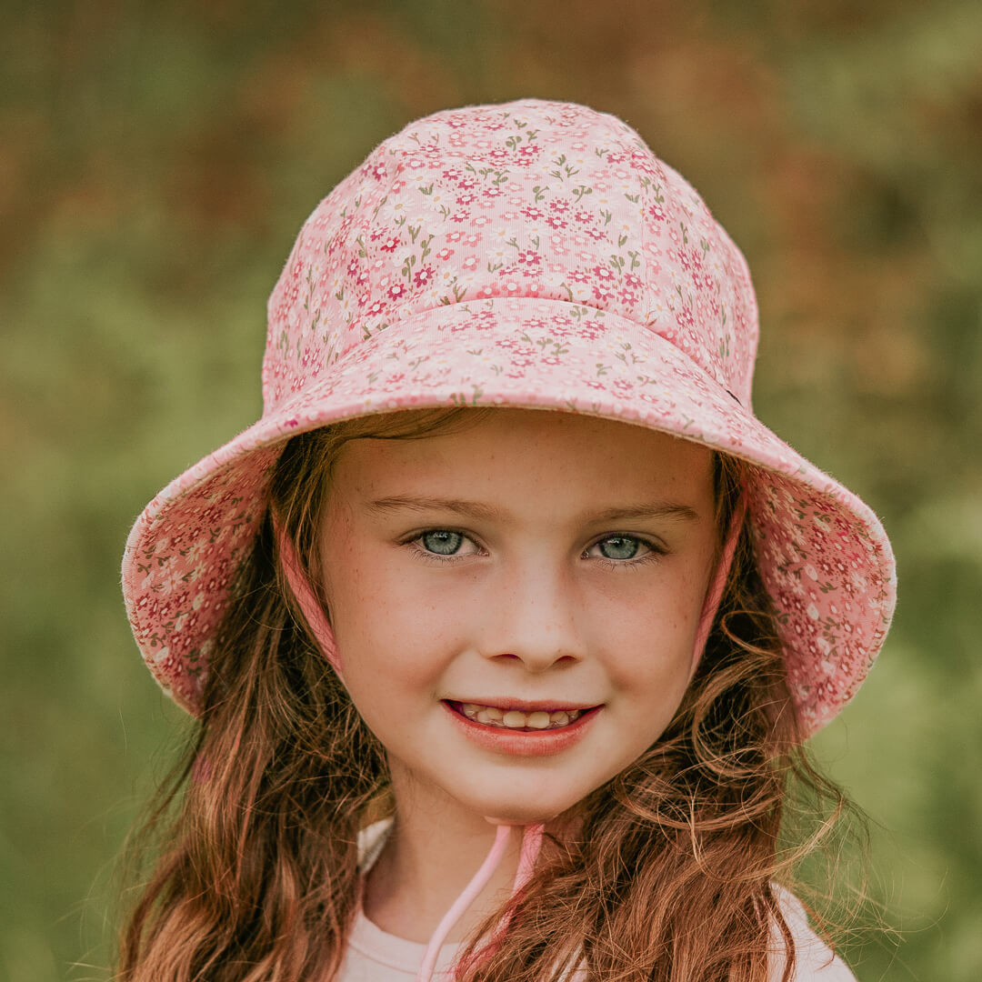 The Bedhead Ponytail Bucket hat is a UPF50+ kids sun hat featuring our unique 'anti-flop' technology ensuring brims won't flop in front of their eyes!