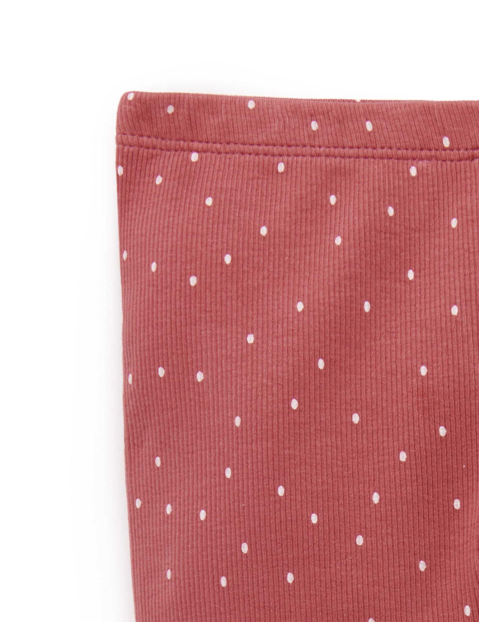 Our Thick Rib Leggings are strong, stretchy and comfortable and won't lose their shape. Made from soft organic cotton with elastane, these leggings are printed with a sweet all over polka dot design and can be worn all season. Pair with our windcheaters for a comfy outfit.