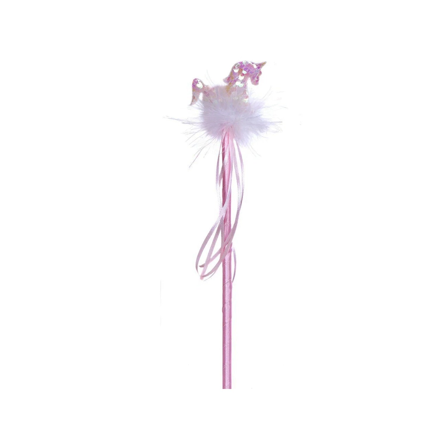 Add a touch of magic to an outfit or a little one's pretend play. The wand is covered in sequins and accented with the softest white marabou. Measuring 33cm in length, the design is decorated with elegant pink ribbons.