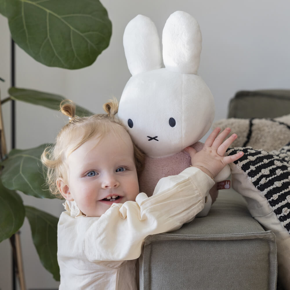 Experience the magic of Miffy with the soft fluffy plush Miffy, now in a cuddly 35cm size. This iconic character brings joy and comfort with its soft chime bell inside and soft coloured texture; it's the perfect gift for every Miffy fan. Let Miffy join the family and create memories that will last a lifetime.