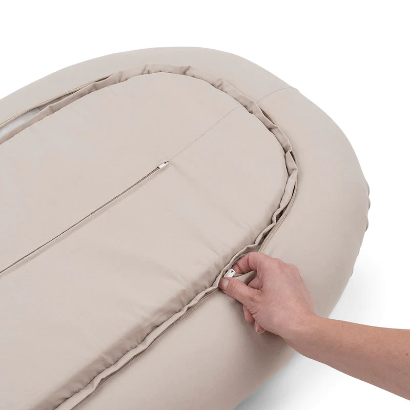 The Cozy nest encases your baby and creates a safe and familiar space - perfect for play- and tummy time. A soft nest for your child to snuggle in while you have both hands free. Through a hidden YKK zipper the mattress is quickly removed, making it easy to wash the cover and filling together or mattress separately if needed.