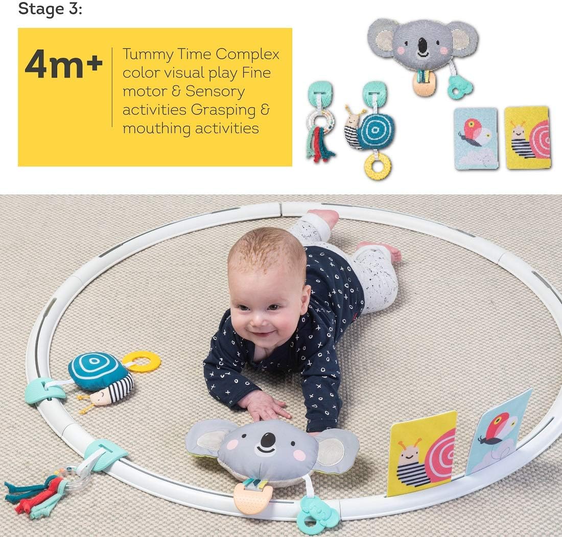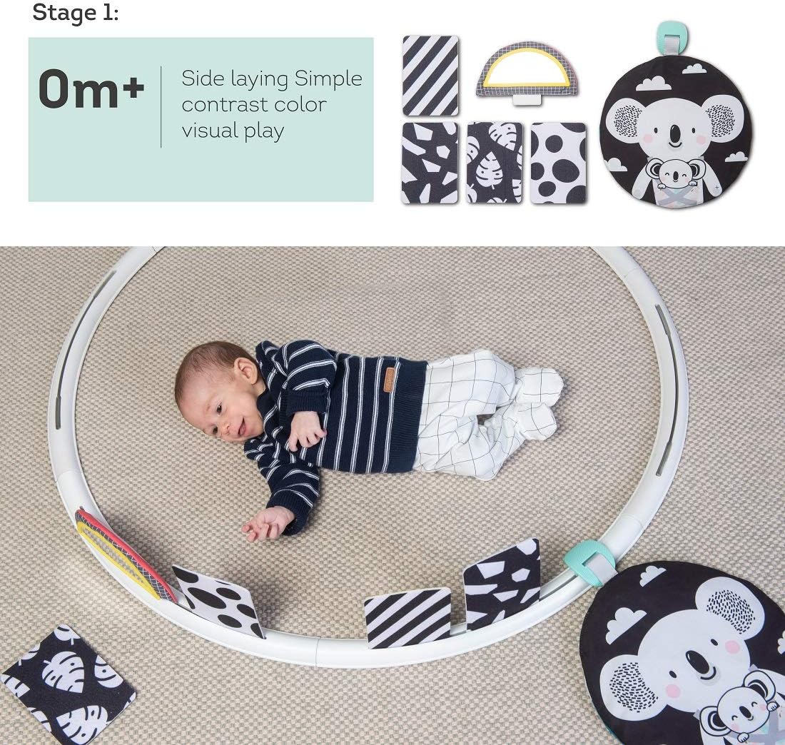 Featuring 4 colorful felt art cards, round double sided Koala soft panel with crinkle filling and a weighted textured leaf filled with plastic beans. Promote baby’s gross motor skills and vision development while lying on back/side lying /tummy time. - Stage 3: (3-5m):