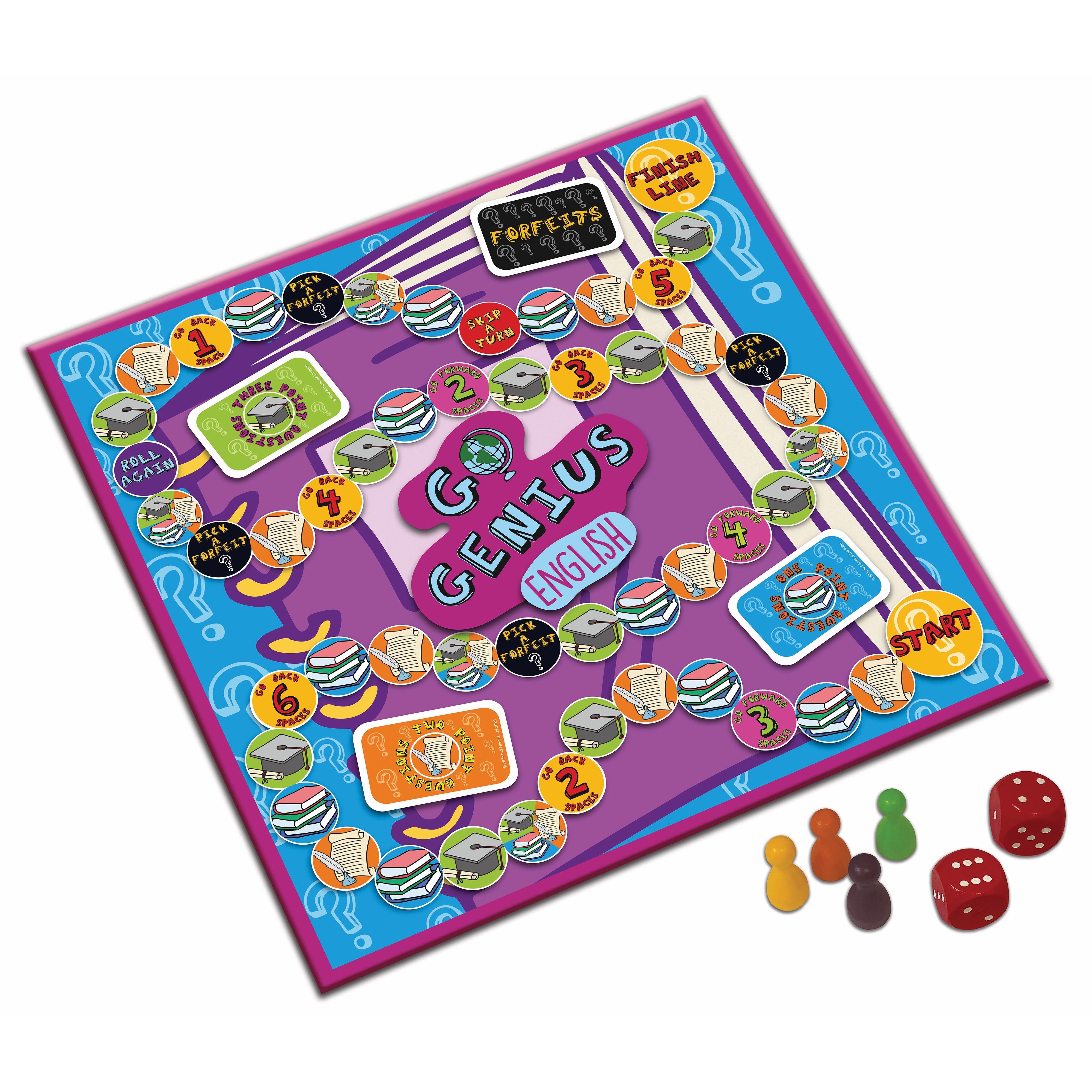 Join the fun and educational experience with Go Genius English Board Game – Navigate through challenges that include spelling, punctuation, and grammar exercises
