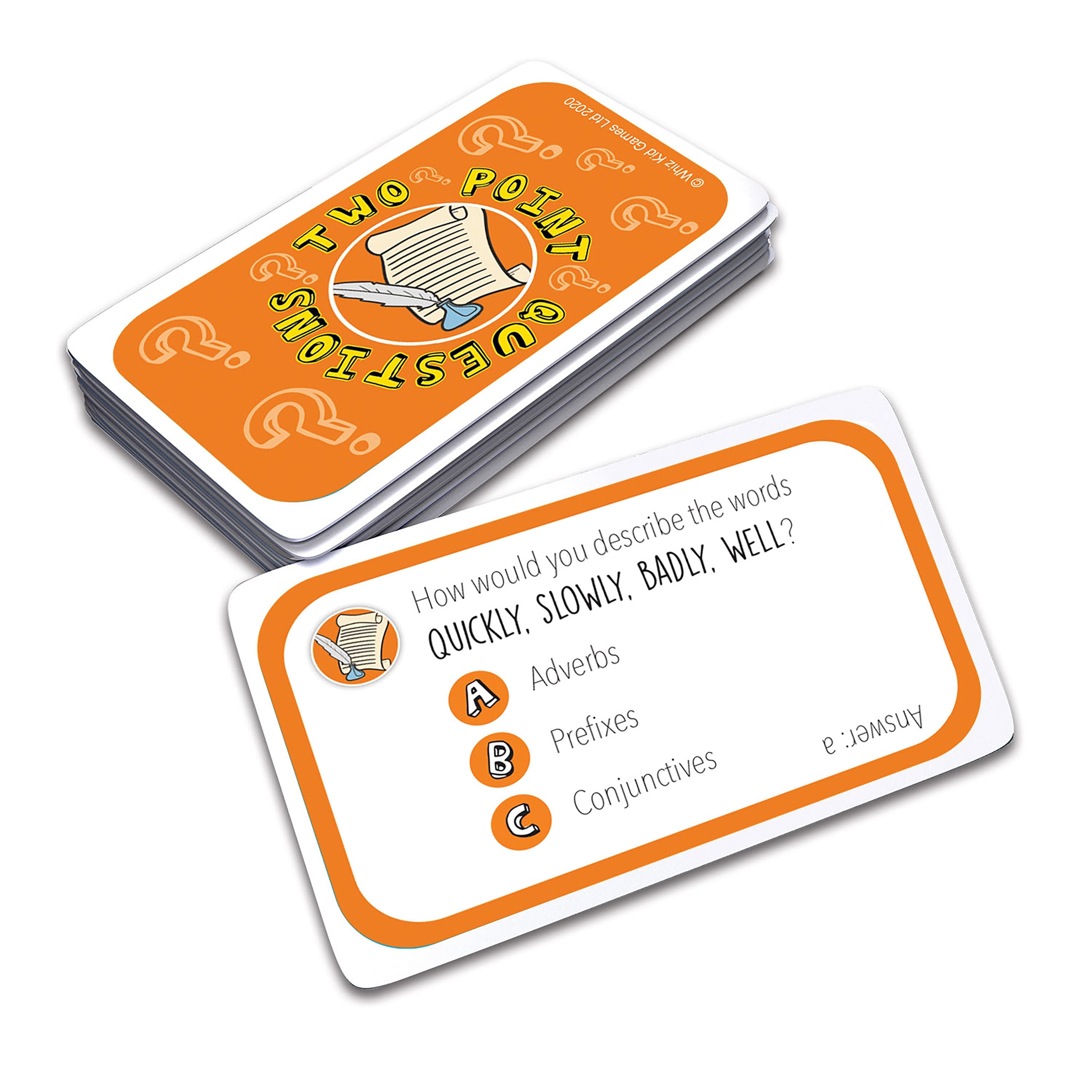 - 90 Question cards, 18 forfeit cards, 4 genius stickers and instructions