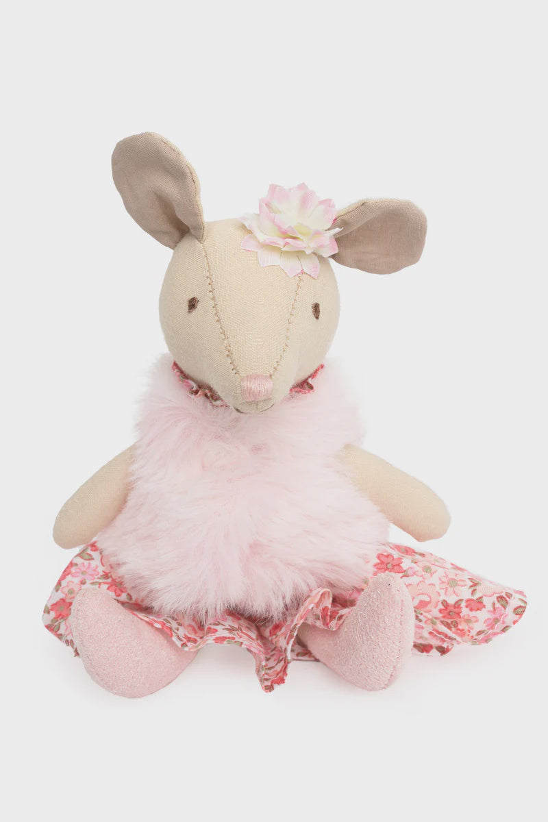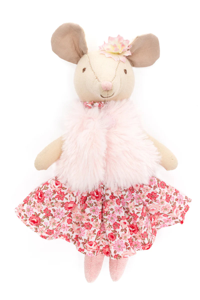 Ariella the Mouse doll has a soft body with an adorable pink fur vest and flower dress. Ariella is the most stylish mouse on the block! She even comes with a flower in her ear. The doll is made with stitched eyes & nose.