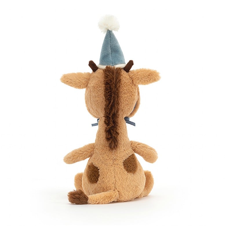 Jollipop Giraffe is all about those party games! This cocoa-custard chum never wants to stop playing, even after everyone else is tired out. With soft chocolate mane, dinky horns and cheery blue hat, this lively leaf-eater is a precious pal – sure to keep all your guests in good spirits!
