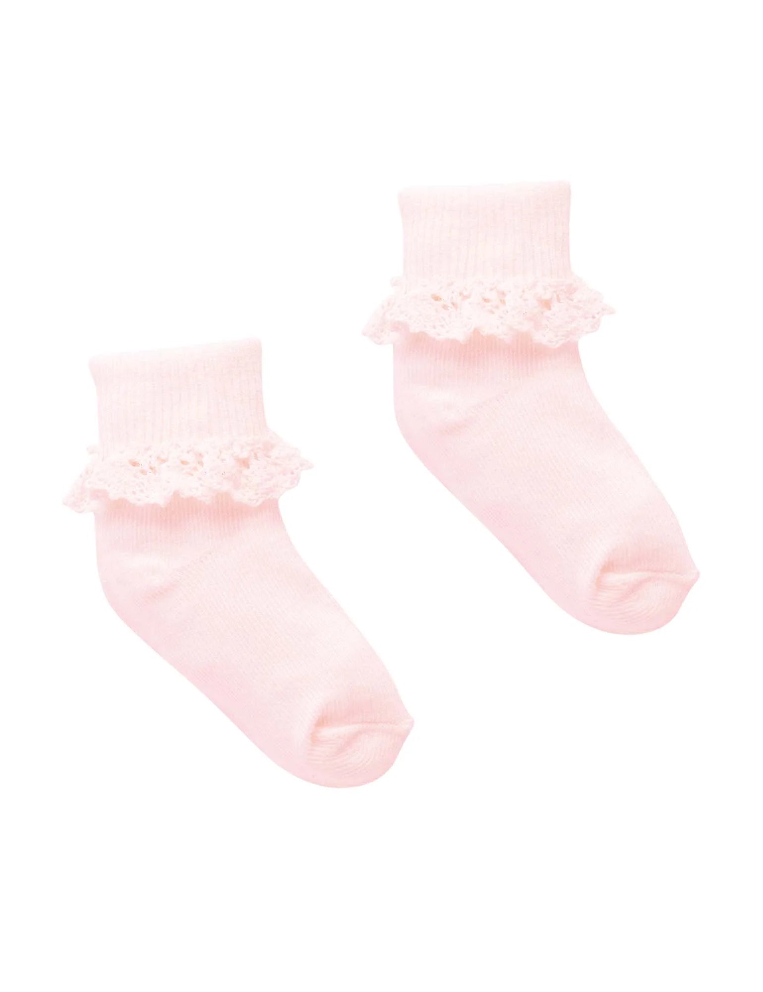 Purebaby Essentials Lace Socks are a sweet addition to your little ones wardrobe, keeping their feet warm and snug. Featuring a soft ribbed opening and lace ruffle detail. Made from organic cotton blend, making the socks soft, gentle and breathable on delicate skin. This item is available in both baby & toddler sizing.