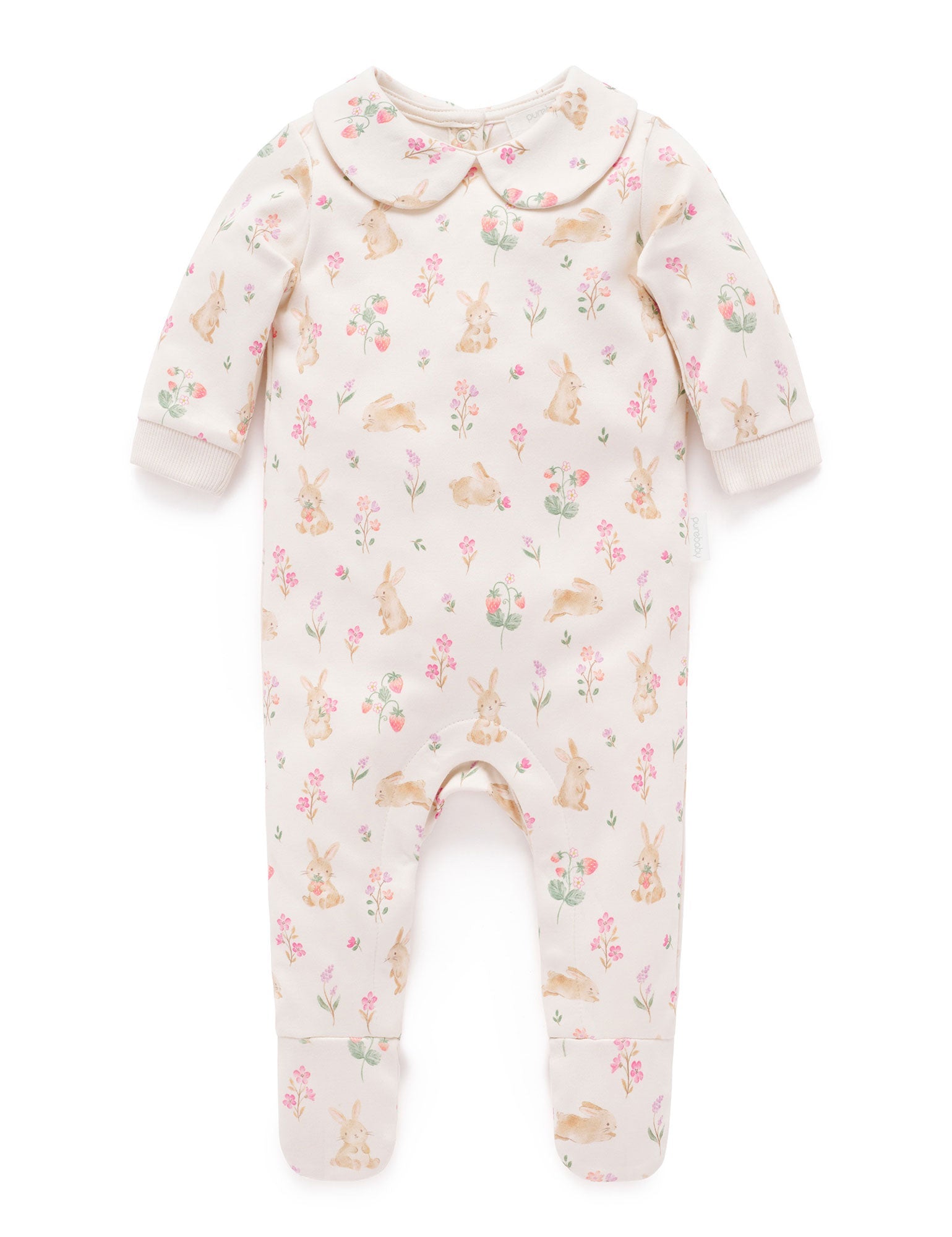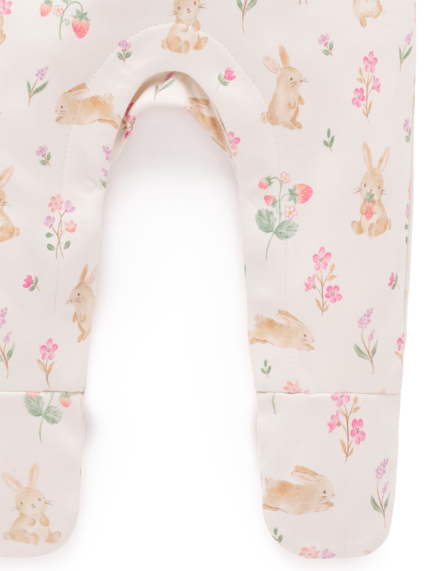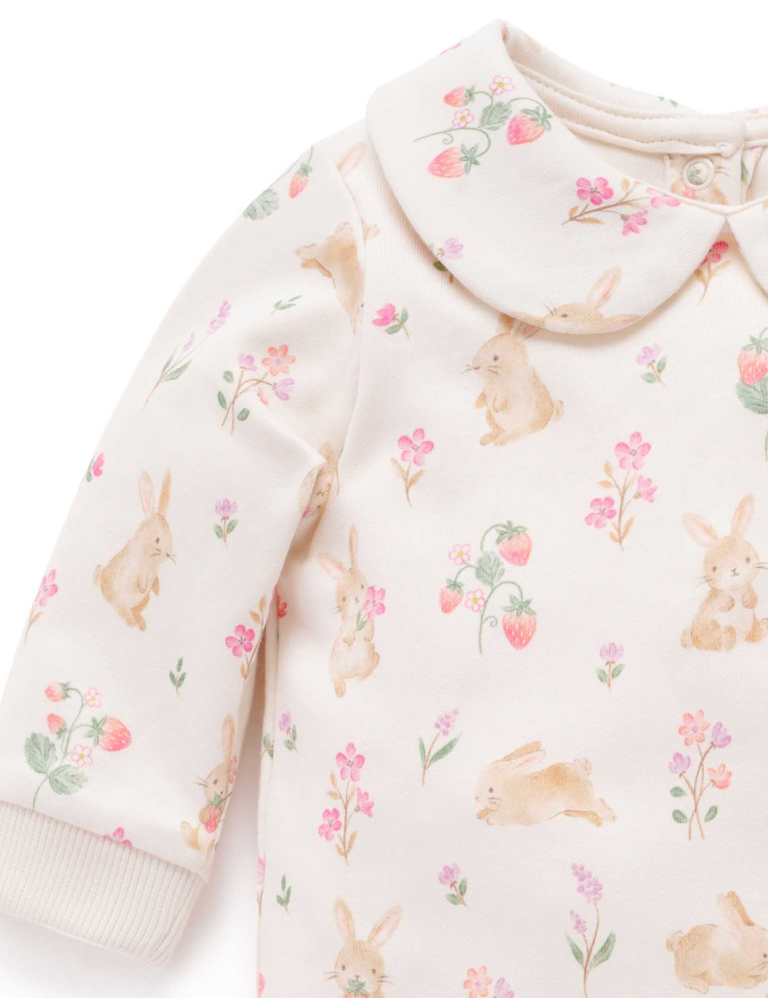 Our Thick Bunny Growsuit is a sweet and practical style! Featuring a pretty all over watercolour print of bunnies and flowers, with a rounded collar and snap clips at the leg and back for easy dressing. Made from a thick 100% Organic Cotton interlock to keep your little one warm in the cooler months.